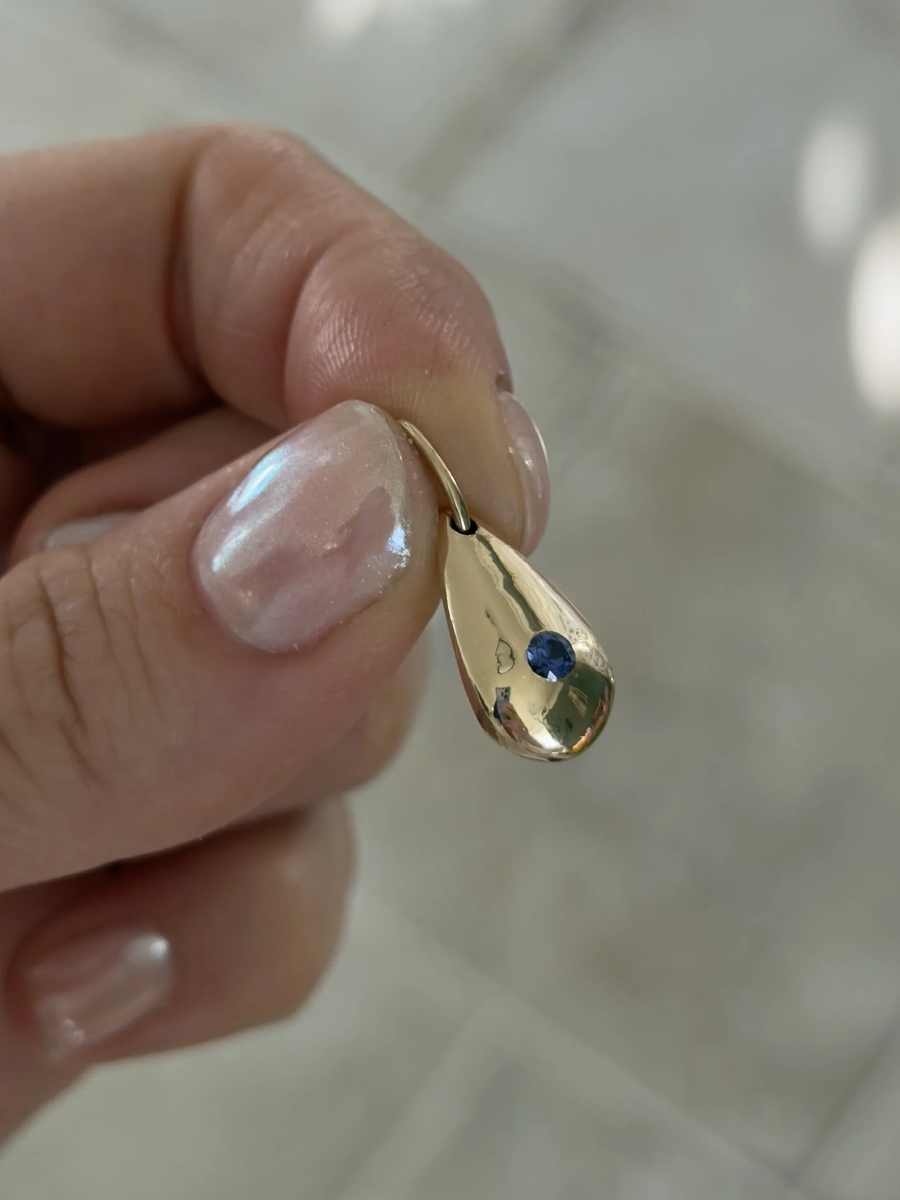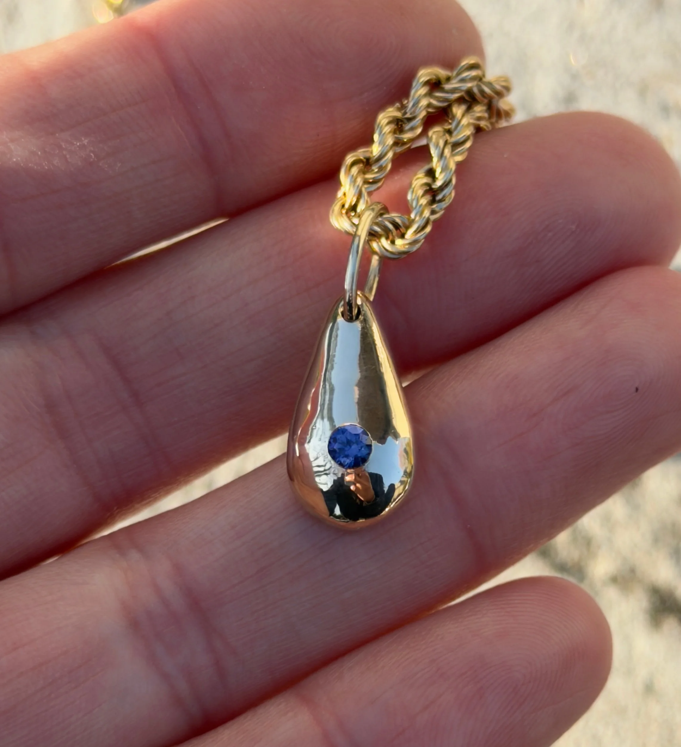 Made with 14k solid gold and a lab Ceylon blue sapphire. Ships within two business days.