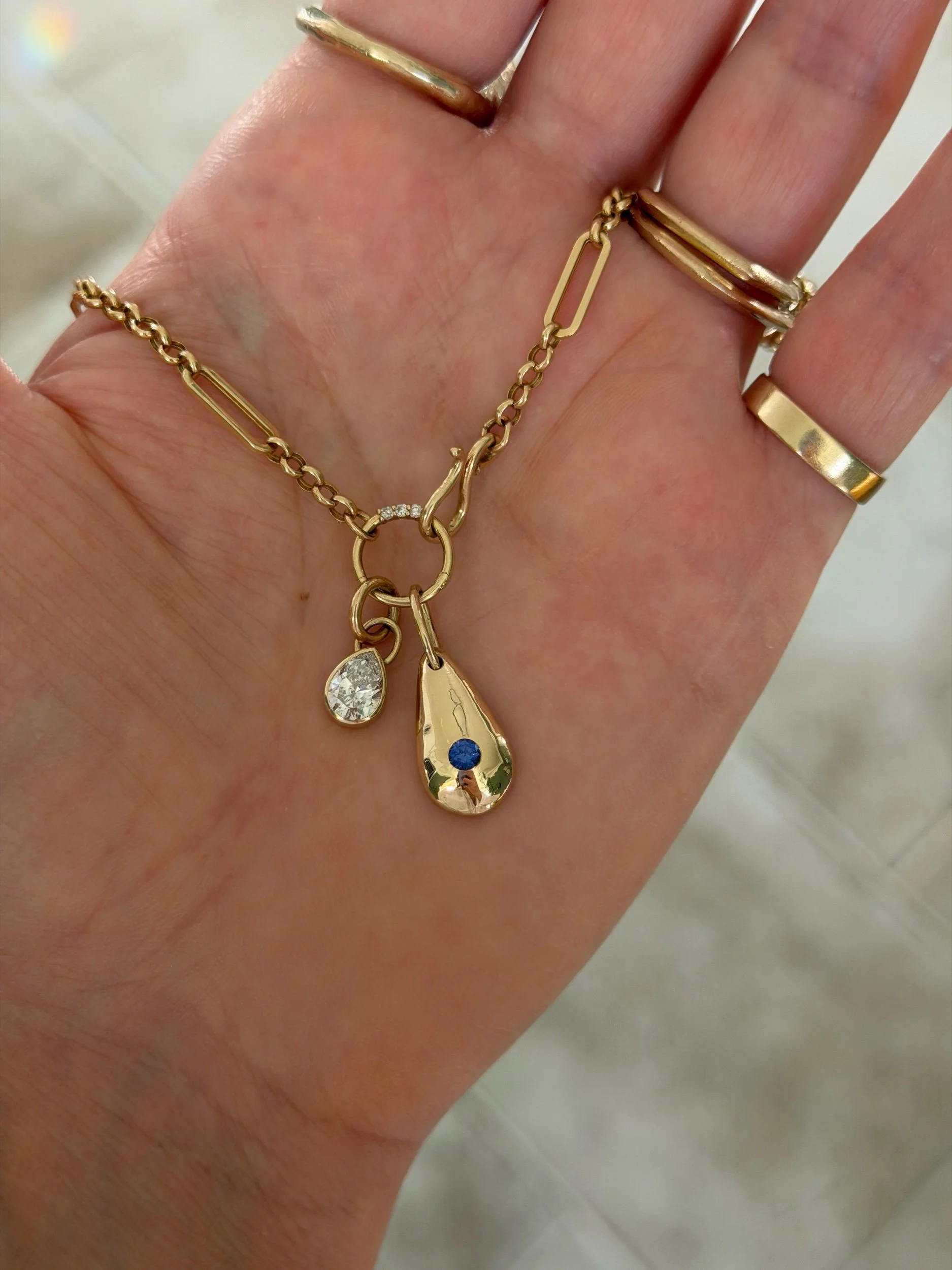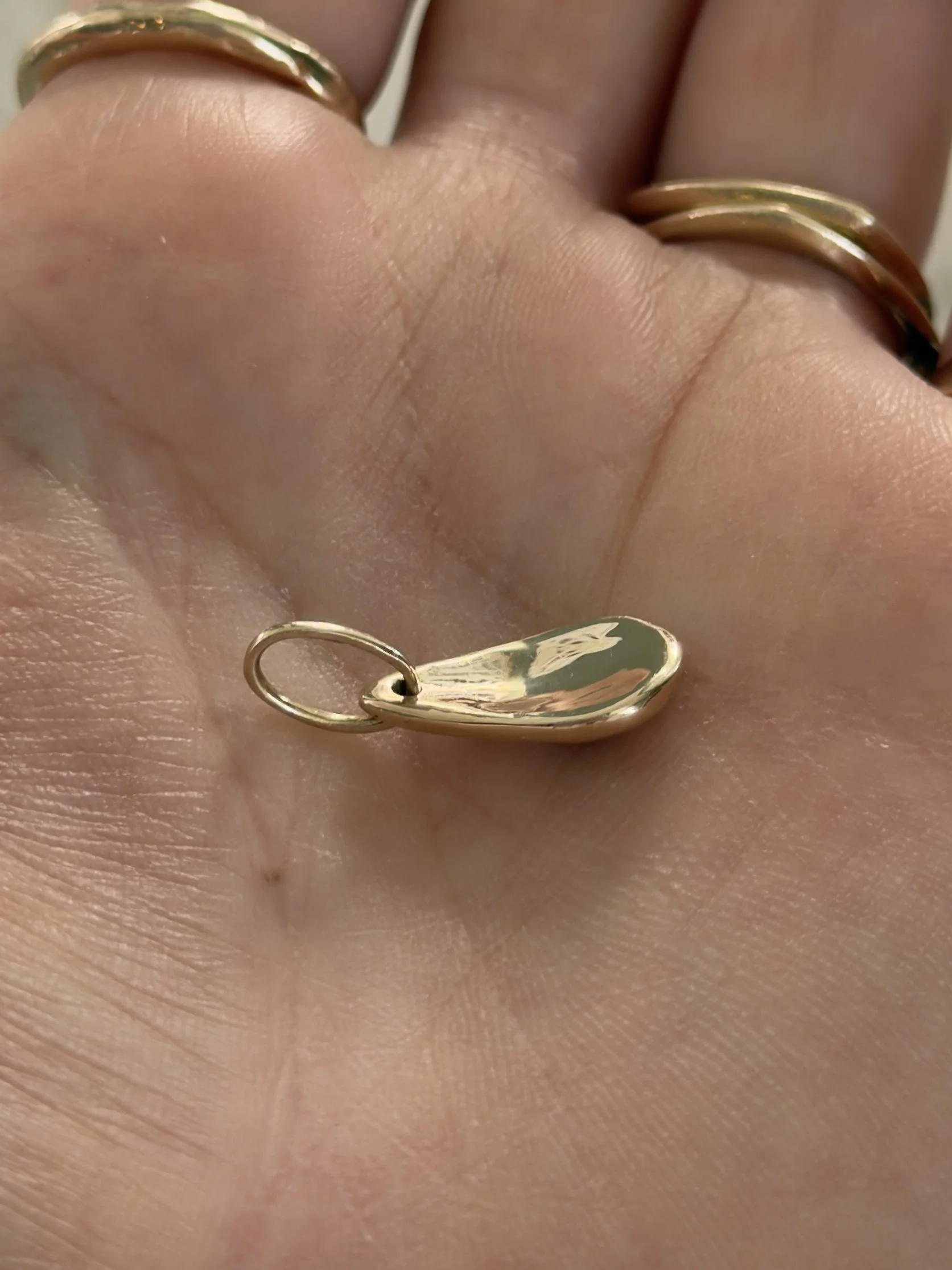 The Worry Not charm is designed to nestle between your pointer finger and thumb—an intentional form meant to be rubbed, calming the mind.