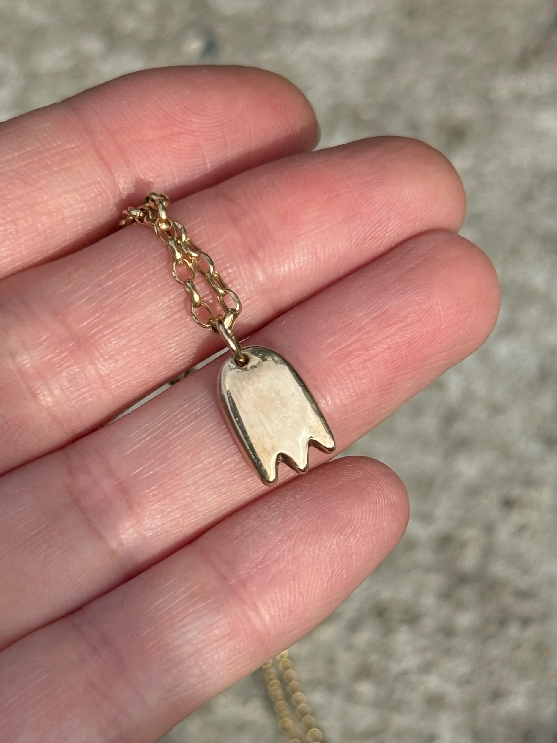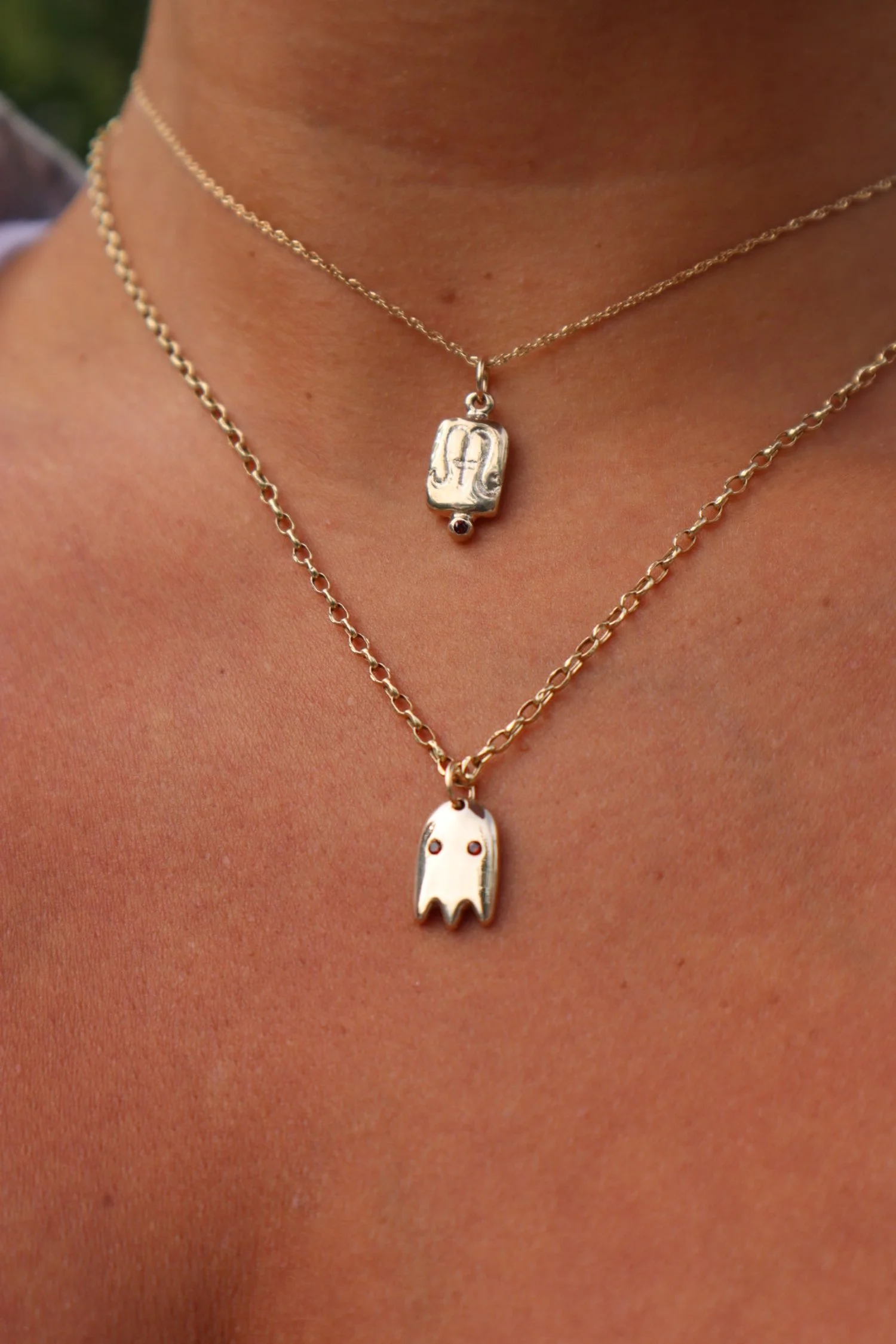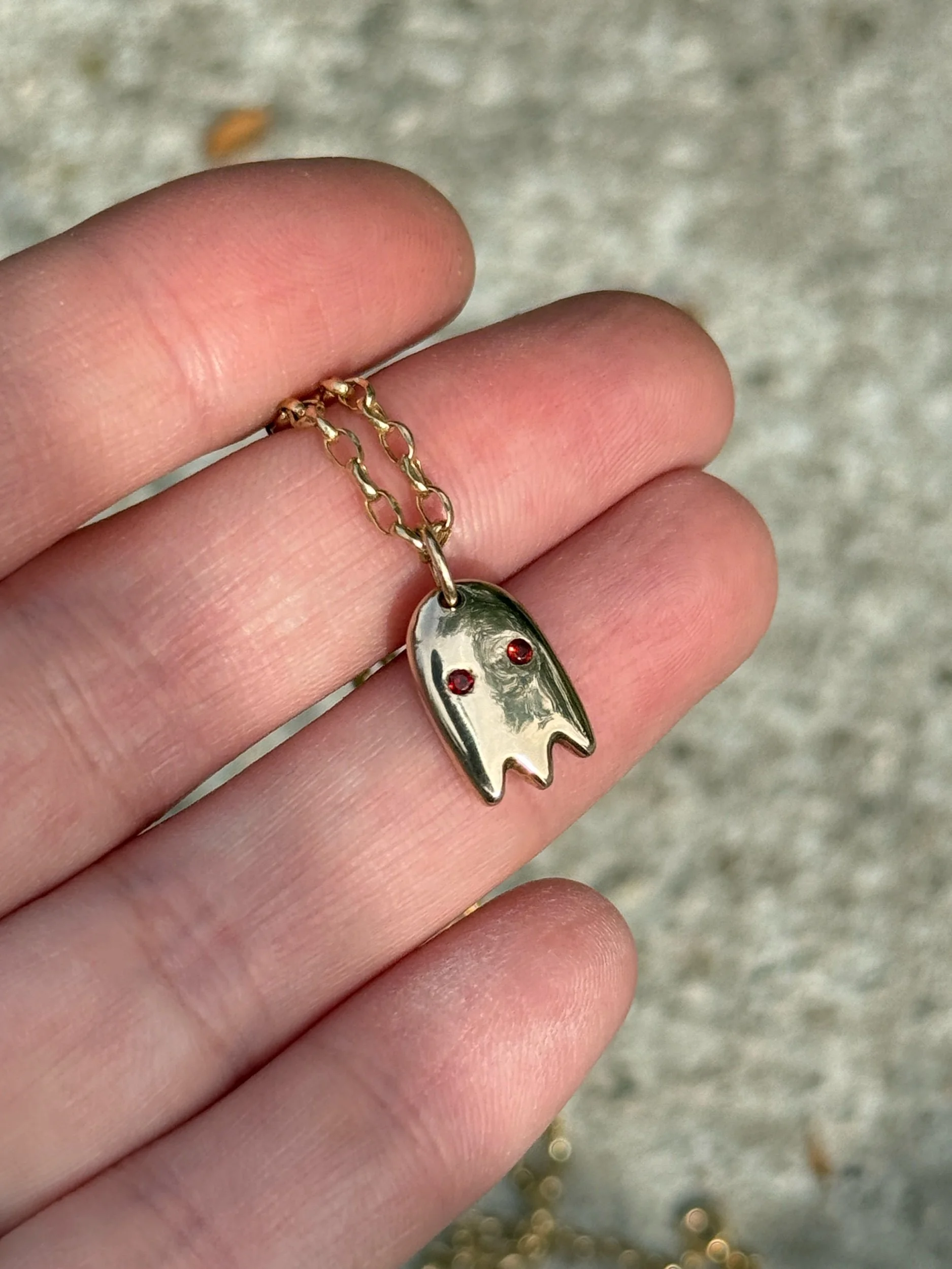 Baby ghost with sparkly garnet eyes. A spooky friend to keep with you for eternity. Slightly smaller than the original Boo charm.